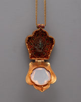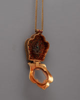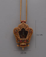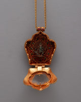The Ganesh Ghau Locket is perfect for collectors, jewelry enthusiasts, and spiritual seekers because it is a beautiful piece of jewelry and a significant holy relic. This locket encourages thoughtful reflection and reverence whether it is worn near the heart during meditation and prayer or shown as a treasured addition to a collection. With its artistic beauty and spiritual symbolism, it elevates any space and is a valued addition to any collection or personal altar. The locket's overall visual appeal is enhanced by the gold plating, which gives a sense of refinement and reverence. This locket is more than just a pretty item; it's a significant relic representing fine craftsmanship and profound spiritual principles.