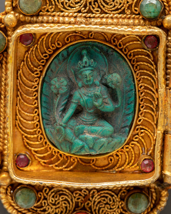 Ghau Box Locket with Green Tara | Buddhist Spiritual Protection Amulet