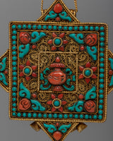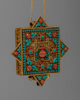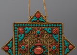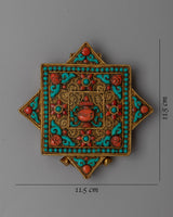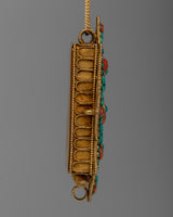 Discover the exquisite design and profound spiritual meaning of the Ghau Box Prayer Locket, which is meticulously fashioned from a copper body and finely inlaid with genuine turquoise and coral stones. You can store written prayers, consecrated objects, or holy relics in this traditional Tibetan prayer box locket, which doubles as a transportable shrine. The locket's religious value is increased by the rich coral and vivid turquoise embellishments, which are not only aesthetically beautiful but also have cultural and spiritual significance.