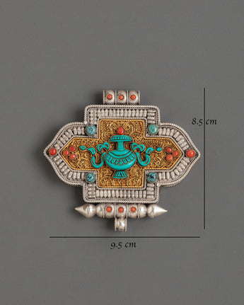 The Handcrafted Tibetan Buddhist Ghau Box Locket is an exquisite spiritual amulet inspired by centuries of Himalayan craftsmanship. Made from lustrous silver with gold-plated details, it features vivid coral and turquoise stones that embody harmony, healing, and vitality. Every element of its design—from the fine engravings to the protective case—reflects sacred Tibetan artistry. Traditionally worn close to the heart, this Ghau Box serves both as a powerful spiritual charm and a meaningful piece of cultural jewelry.