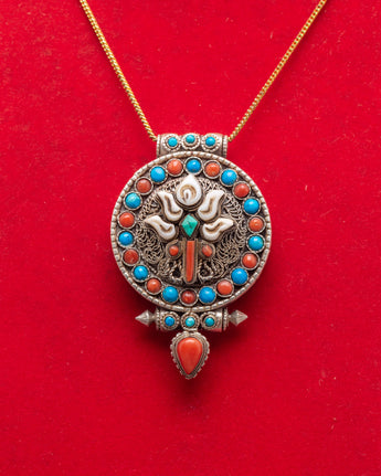Lotus Flower Silver Locket | Buddhist Ritual Ghau Pendant