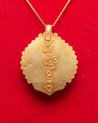 The Manjushri Ghau Box Amulet is a stunning handcrafted pendant that captures the essence of Manjushri, the Bodhisattva of Wisdom in Tibetan Buddhism. This pendant, measuring 5.5cm in height and 4.5cm in breadth, and weighing only 0.020kg, is crafted from silver with gold plating to provide elegance while preserving its spiritual meaning. The Ghau box design, which has traditionally been used to contain sacred mantras, represents spiritual protection and the preservation of wisdom. This amulet is a manifestation of Manjushri's knowledge, providing security, spiritual clarity, and guidance to the user.