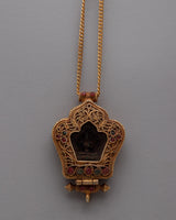 The Manjushri Ghau Prayer Locket is perfect for spiritual seekers, jewelry collectors, and lovers of beautiful jewelry because it's a significant religious relic that also looks great on itself. This locket encourages thoughtful reflection and reverence, whether worn near the heart during meditation and prayer or as a treasured addition to a collection. Its artistic beauty and spiritual symbolism elevate any space and is a valued addition to any collection or personal altar. The gold plating enhances the locket's overall visual appeal, which lends a sense of elegance and reverence. This locket is more than just a pretty item; it's a significant relic representing fine craftsmanship and profound spiritual principles.