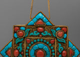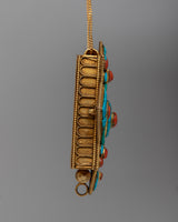The Original Stones Inlaid Ghau Locket is now available. It is expertly fashioned from copper and exquisitely embellished with genuine turquoise and coral stones. This classic Tibetan Ghau locket offers the user protection as well as a touch of spiritual elegance. It is made to hold written prayers or holy relics. Since the orginal turquoise and coral are highly valued in Tibetan tradition for their spiritual and therapeutic qualities, they have been meticulously inlaid into the locket, enhancing its visual appeal with their vivid and contrasting colors.