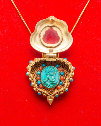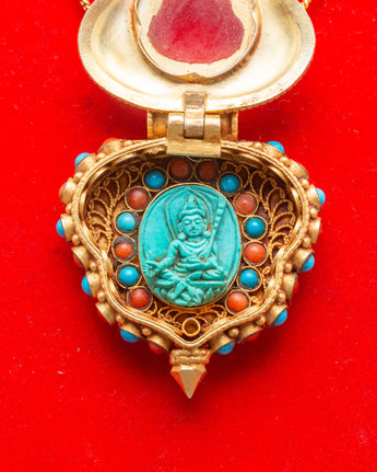 This Tibetan Ghau Box Locket is more than simply an ornament; it is a spiritual tool meant to take Padmasambhava's blessings with you. This locket is ideal for individuals on the Buddhist path, collectors of Tibetan jewelry, or anybody looking for a protective and meaningful piece of jewelry. It serves as a continual reminder of Padmasambhava's teachings. This Padmasambhava Ghau Box Locket, worn daily or during meditation, is a potent piece of spiritual jewelry that offers wisdom, protection, and inner calm.