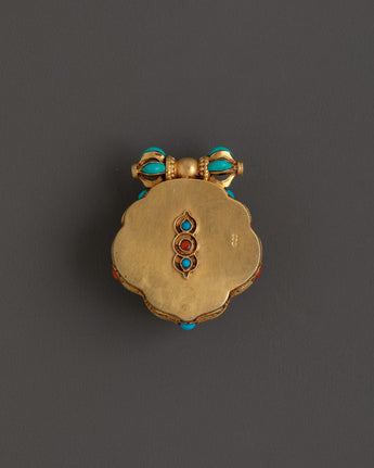 The locket is beautifully adorned with turquoise and coral stones, two of the most significant elements in Tibetan culture. Turquoise is valued as a stone of spiritual protection and healing, while coral is seen as a symbol of energy, life, and courage. Each stone is carefully inlaid into ornate designs, which often feature motifs representing compassion, wisdom, and blessings. The combination of metals and stones creates a striking pendant that radiates spiritual depth.