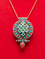 Handmade Tibetan Ghau Box Amulet | Silver Pendant with Coral & Turquoise
