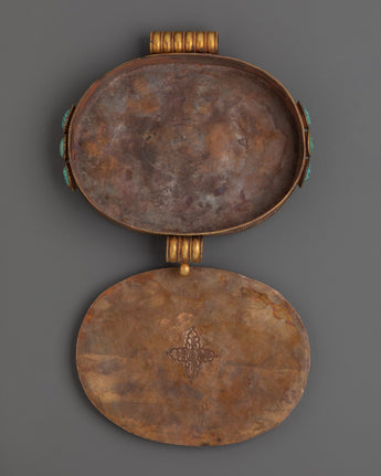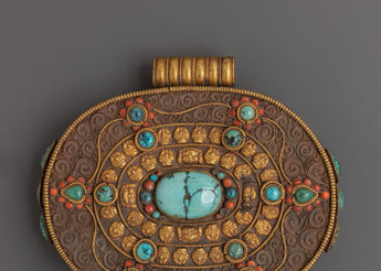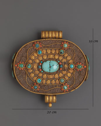 Tibetan Gold Plated Ghau Box Locket | Filigree Work with Turquoise