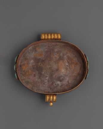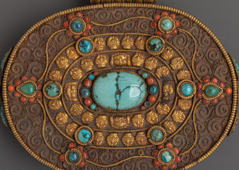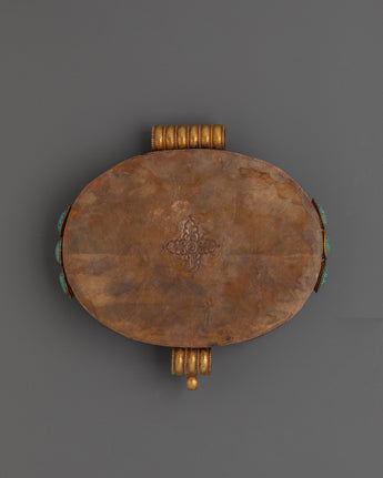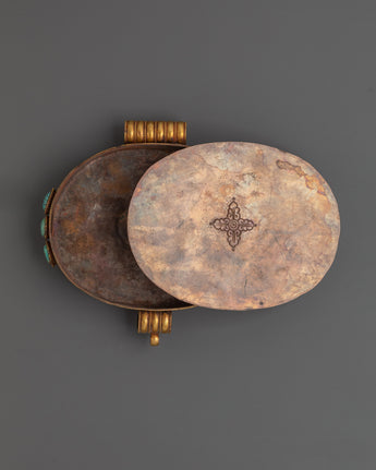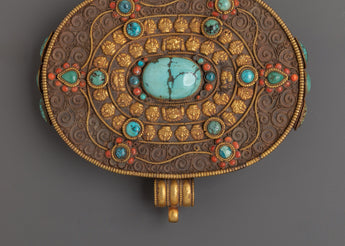 Ideal for altars, meditation spaces, or as a decorative spiritual storage piece, this Ghau box combines traditional craftsmanship with meaningful symbolism. The turquoise inlays add protective energy and promote spiritual well-being, while the filigree work showcases exquisite artistry. Perfect for safeguarding personal spiritual treasures or gifting to practitioners of Tibetan rituals.