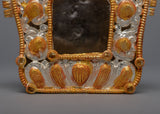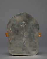 This beautiful Tibetan Treasure Box is a copper body with gold and silver plated. The Auspicious Symbol is carved, which is gold plated. This beautiful piece was handmade in Nepal and had a spacious hollow see-through space to put in another Buddhist mantra of your choice.