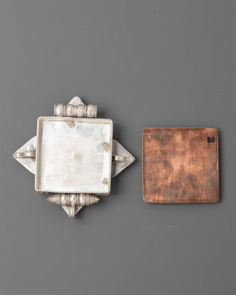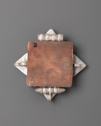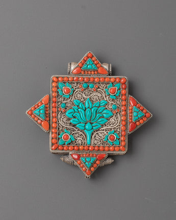 The silver construction provides a finish, while the semi-precious stones add both beauty and spiritual significance. Traditionally used in Tibetan rituals, a Ghau box is a shrine that can hold sacred relics, prayers, or protective talismans. Whether placed on an altar or used to store cherished items, this locket radiates spiritual energy and aesthetic elegance.