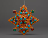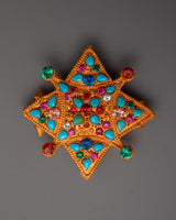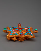 Discover the divine craftsmanship of the Buddhist Prayer Box Ghau Pendant, a treasure meticulously handcrafted on a copper body. This pendant, which is plated in lavish 24k gold, exudes a radiant aura and represents spirituality and enlightenment. Every element of the intricate design has been painstakingly created to perfection in order to showcase the exquisite beauty of the ghau. Its allure is increased by the embedded gemstones, which also lend a hint of elegance and mystique. This pendant acts as a sacred container that you can use to keep your mantras, prayers, or other sacred items close to your heart. Allow the strength of this beautifully crafted ghau pendant to protect and guide you on your spiritual path.
