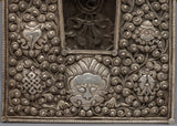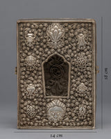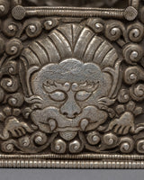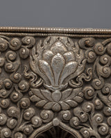 This Ghau is a hand-carved copper body with silver plating on it. The ghau has a floral design. At the back of the box, the vajra is crafted. This box wastraditionally used as portable shrines, which contained small amulets for prayer. The prayer box can exorcise and bless safety when you wear it.