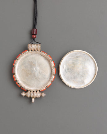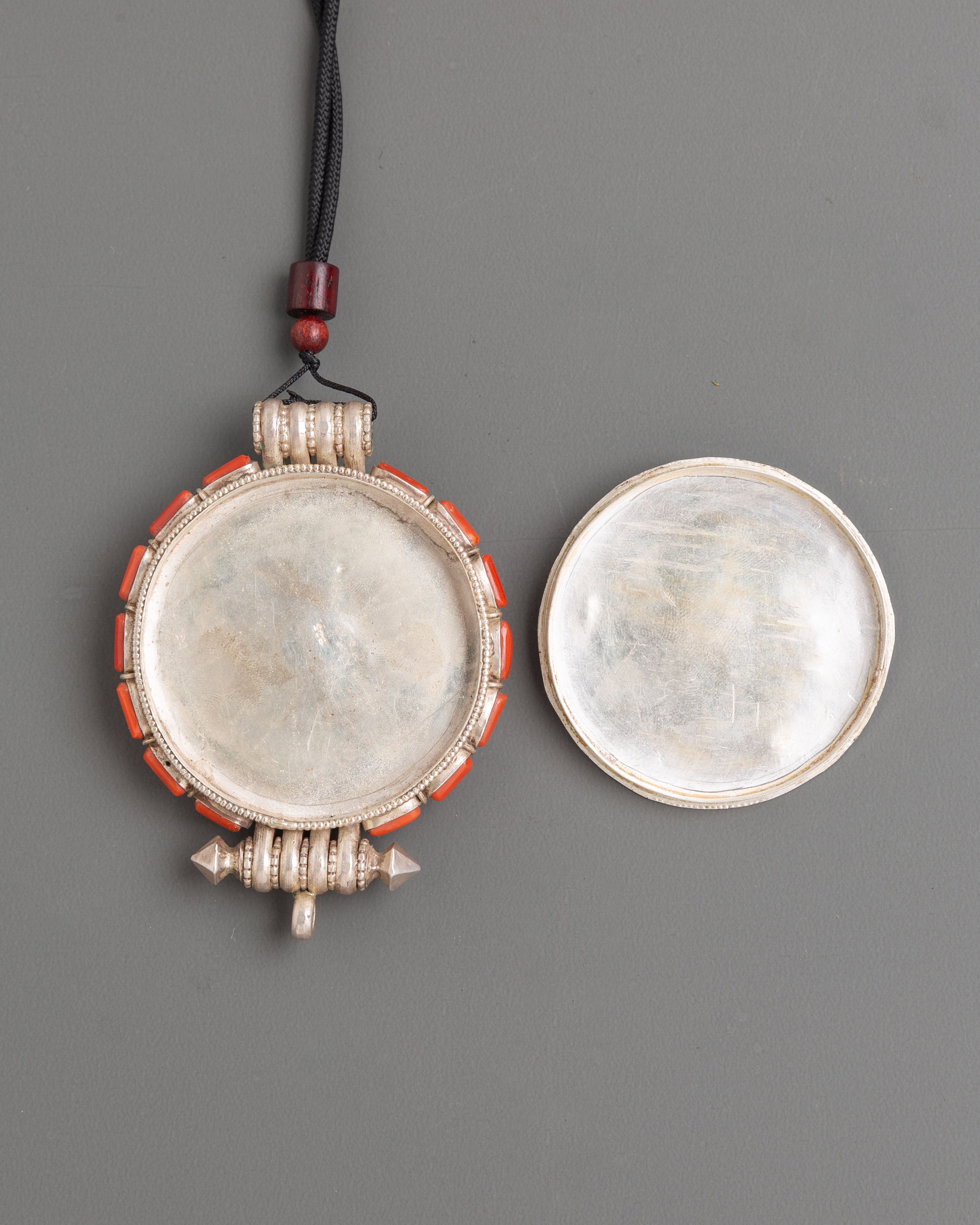 Every detail of this Tibetan Buddhist amulet embodies centuries of spiritual craftsmanship, connecting the wearer to a lineage of wisdom and mindfulness. The silver locket’s elegant design encases the coral stone as a symbol of spiritual awakening and the energy of life. It is perfect for personal altars, ritual use, or as a heartfelt gift for those on a path of mindfulness, healing, or inner peace. The spiritual resonance of this piece creates a tranquil presence that inspires reflection, compassion, and balance in any environment where it is worn or displayed.