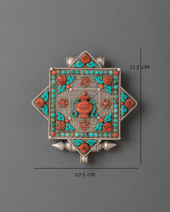 Handcrafted Ghau Box Locket with Vase Motif | Tibetan Prayer Amulet