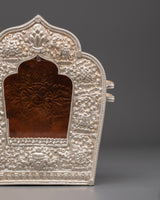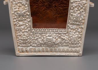 This Handcrafted Traditional Ghau Box is the ideal combination of craftsmanship and spiritual significance. A renowned Tibetan artifact, it is designed to hold sacred objects such as prayer scrolls, relics, or protective amulets used in meditation and rituals. The exquisite design features intricate details inspired by traditional Tibetan art, reflecting the Himalayan region's deep cultural and spiritual values. Measuring 20cm in height and 17.5cm in width, this box is a remarkable addition to any altar or meditation space.