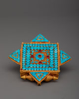 Presenting the exquisite Handmade Buddhist Ghau, a masterful creation handcrafted from a copper body. This intricately designed prayer box is adorned with a mesmerizing array of fully blue gemstones, complemented by the vibrant red coral stones carefully inlaid. The Ghau serves as a sacred container, allowing you to keep your most cherished religious relics close to your heart. The box itself is plated with 24k gold, adding a touch of opulence and reverence to this spiritual piece. Experience the profound connection to your faith as you hold this Handmade Buddhist Ghau in your hands and embark on a journey of devotion and enlightenment.