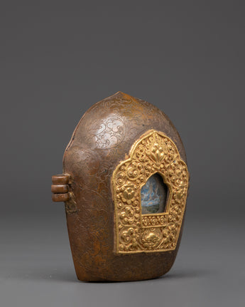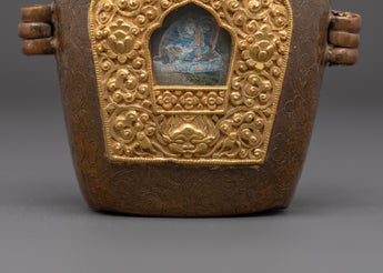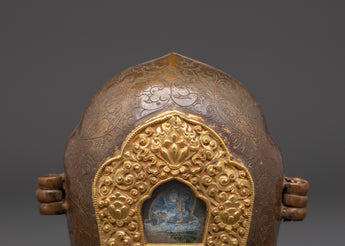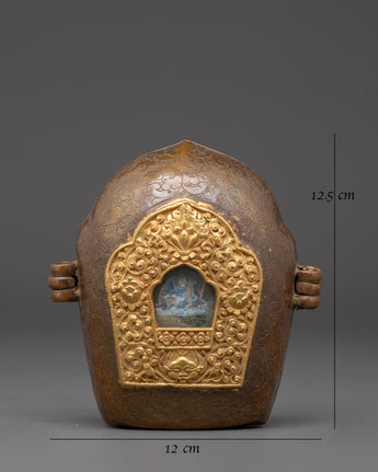 With its beautiful design and rich cultural heritage, this Tibetan Ghau Box is more than simply a decorative object; it is a spiritual artifact that will enrich your meditation and prayer practices. The copper and gold gilding make it both visually appealing and spiritually uplifting, making it a vital addition to any meditation space or shrine.