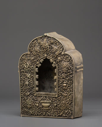 The Ghau Box's design incorporates traditional Tibetan themes such as lotus blossoms, unending knots, and fortunate symbols that signify the circle of life, spiritual awakening, and protection from harmful forces. The open section of the box is usually used to keep sacred writings or relics, making it an essential component of Tibetan Buddhist rites. The meticulous craftsmanship shows the passion and skill that goes into each item, guaranteeing that this Ghau Box is both spiritually profound and visually appealing.