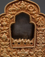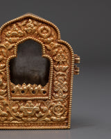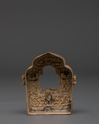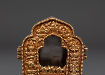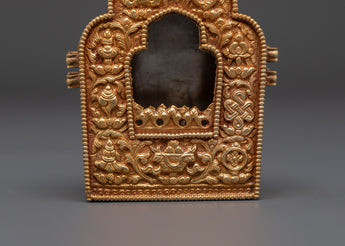 The Tibetan Ghau Box, meticulously created by expert artisans, adds a sense of holiness to any altar or shrine. The gold-plated design contrasted nicely with the copper structure, creating a welcoming atmosphere. Whether you use it for meditation, Tibetan rituals, or simply as a symbol of spiritual devotion, this box has significant cultural meaning and will add to your sacred space.