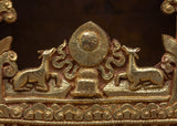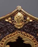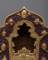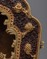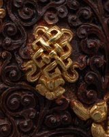 The Ghau is the ultimate prayer box charm that will bring you peace and serenity wherever you go. This stunning piece has a breathtaking handcrafted copper body and is expertly plated in 24k gold for unparalleled shine and elegance. Auspicious symbols are expertly carved outside Ghau to create a space of positive energy and spiritual connection. This powerful charm will enhance your prayer and spiritual practice whether you're meditating at home or on the go.