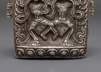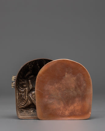 The Skeleton Guardians Chitipati Ghau Box is a sacred vessel traditionally used to enshrine relics, mantras, or protective charms, elevating spiritual practice with its deep symbolism. Expertly crafted by skilled artisans, the silver repousse craftsmanship brings the dynamic skeleton guardians to life, embodying strength and spiritual energy. This versatile amulet box can be placed on a Buddhist altar, carried during journeys, or integrated into ritual ceremonies, providing a tangible connection to profound Buddhist teachings on impermanence and liberation. Weighing only 0.15kg, it is both lightweight and durable, making it an ideal companion for anyone seeking a meaningful spiritual tool with heritage and purpose.