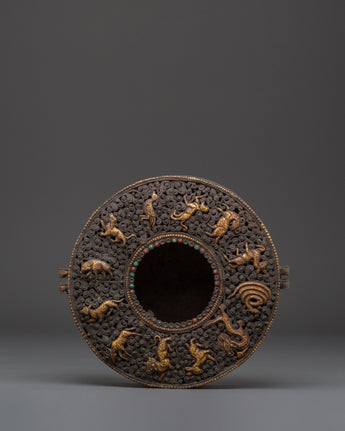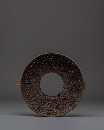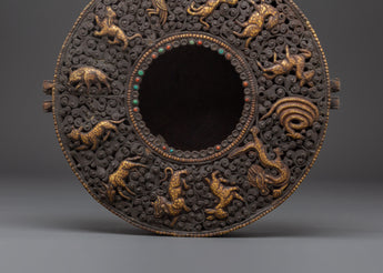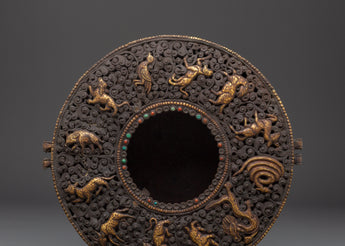 This Tibetan Ghau Box with Loh (19.5cm x 21cm, 1.02kg) is a beautifully handcrafted ritual box, designed with intricate Loh carvings and perfect for use on Buddhist altars or as part of your spiritual practice. The Ghau box is used in Tibetan Buddhist tradition to house sacred items such as relics, mantras, and spiritual offerings, and its detailed Loh carvings symbolize the harmonious balance of energy and divine protection.
