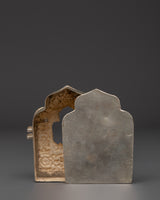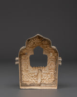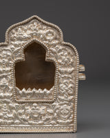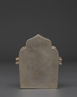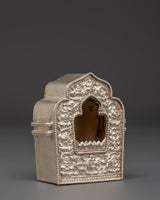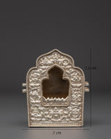 Experience the refined elegance and spiritual significance of the handcrafted Tibetan Sacred Ritual Ghau Box. Made from copper with a silver-plated finish, this intricately crafted box traditionally holds sacred relics central to Tibetan rituals. Measuring 7.5cm in height and 7cm in width, it offers both decorative charm and a meaningful connection to Tibetan cultural heritage.Meticulously crafted, this Ghau Box is a remarkable addition to your spiritual journey. Its detailed silver plating enhances the copper base, symbolizing purity. Perfect for holding sacred relics, prayers, or spiritual symbols, it embodies the rich spiritual heritage of Tibetan Buddhism. More than just a holy container, this box is a lasting testament to traditional Tibetan craftsmanship.