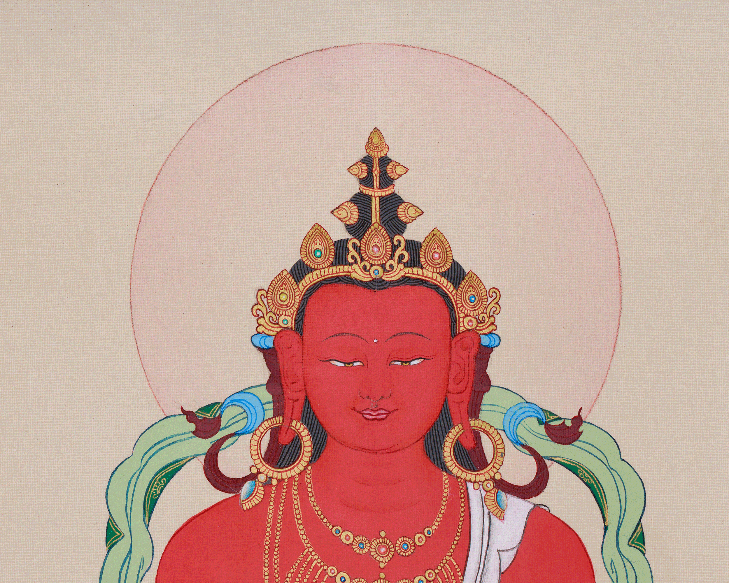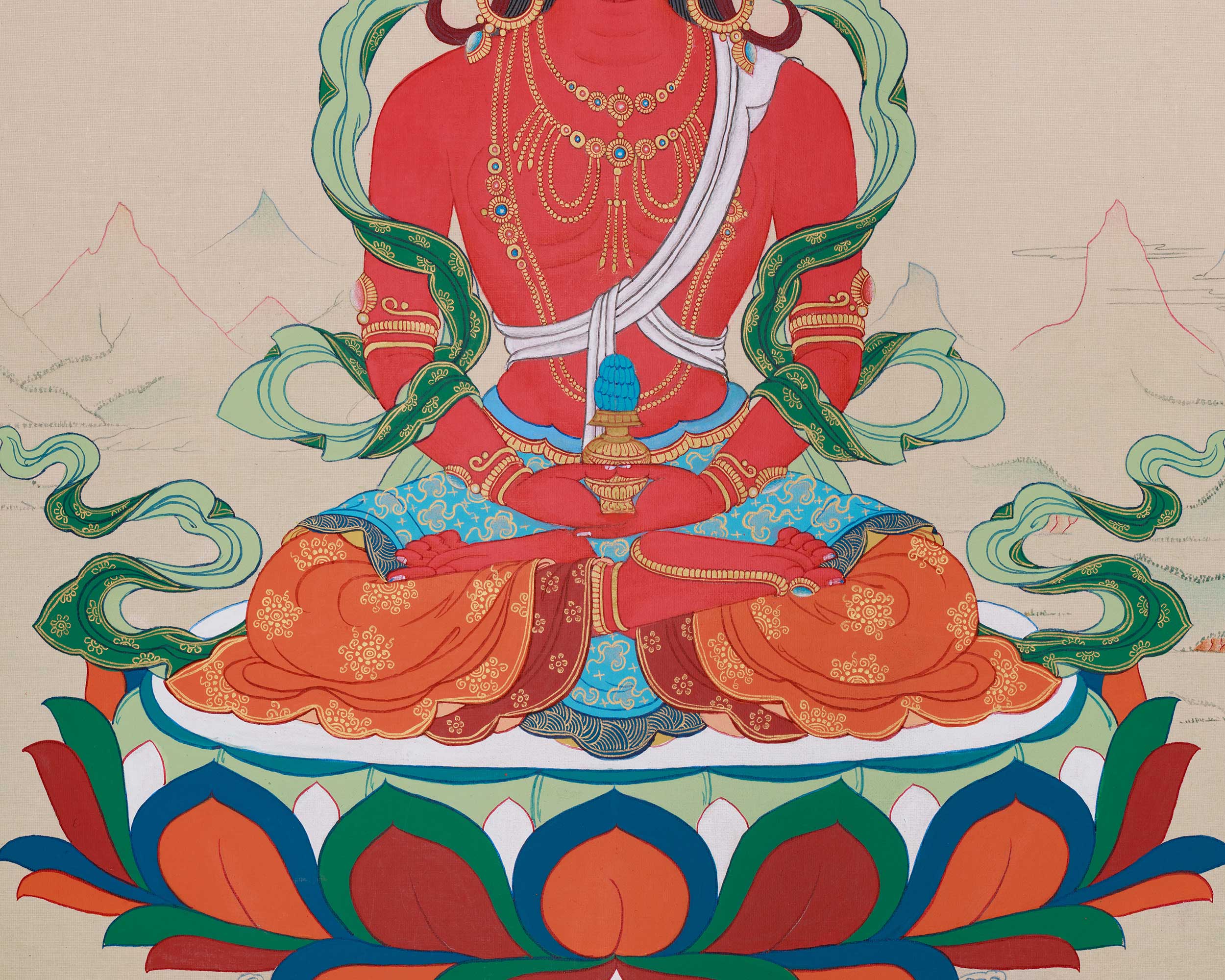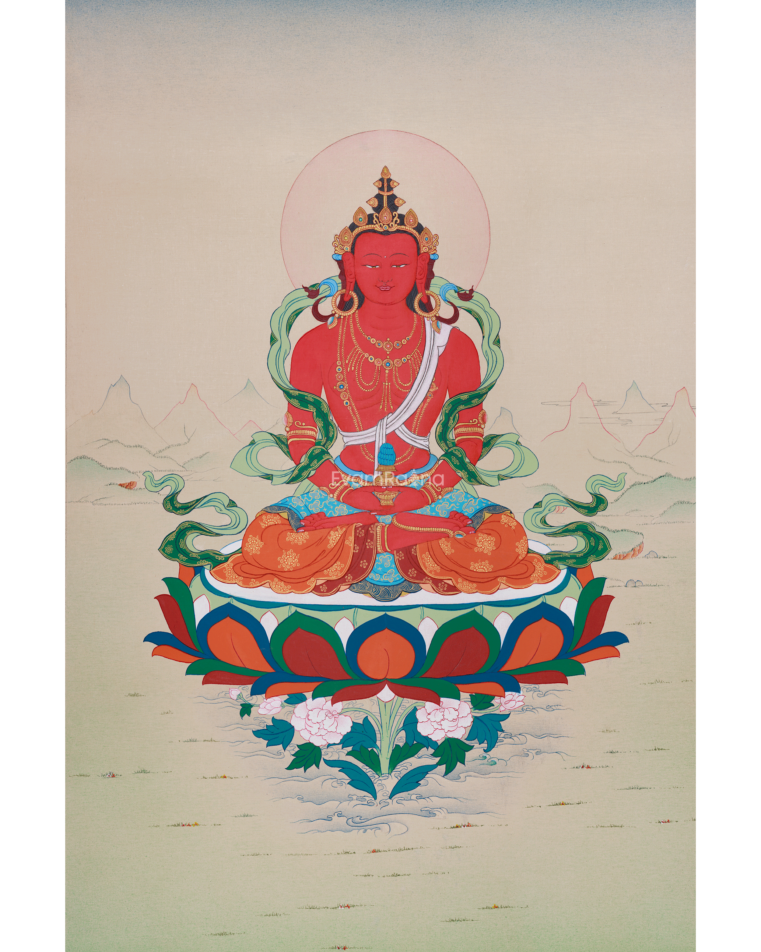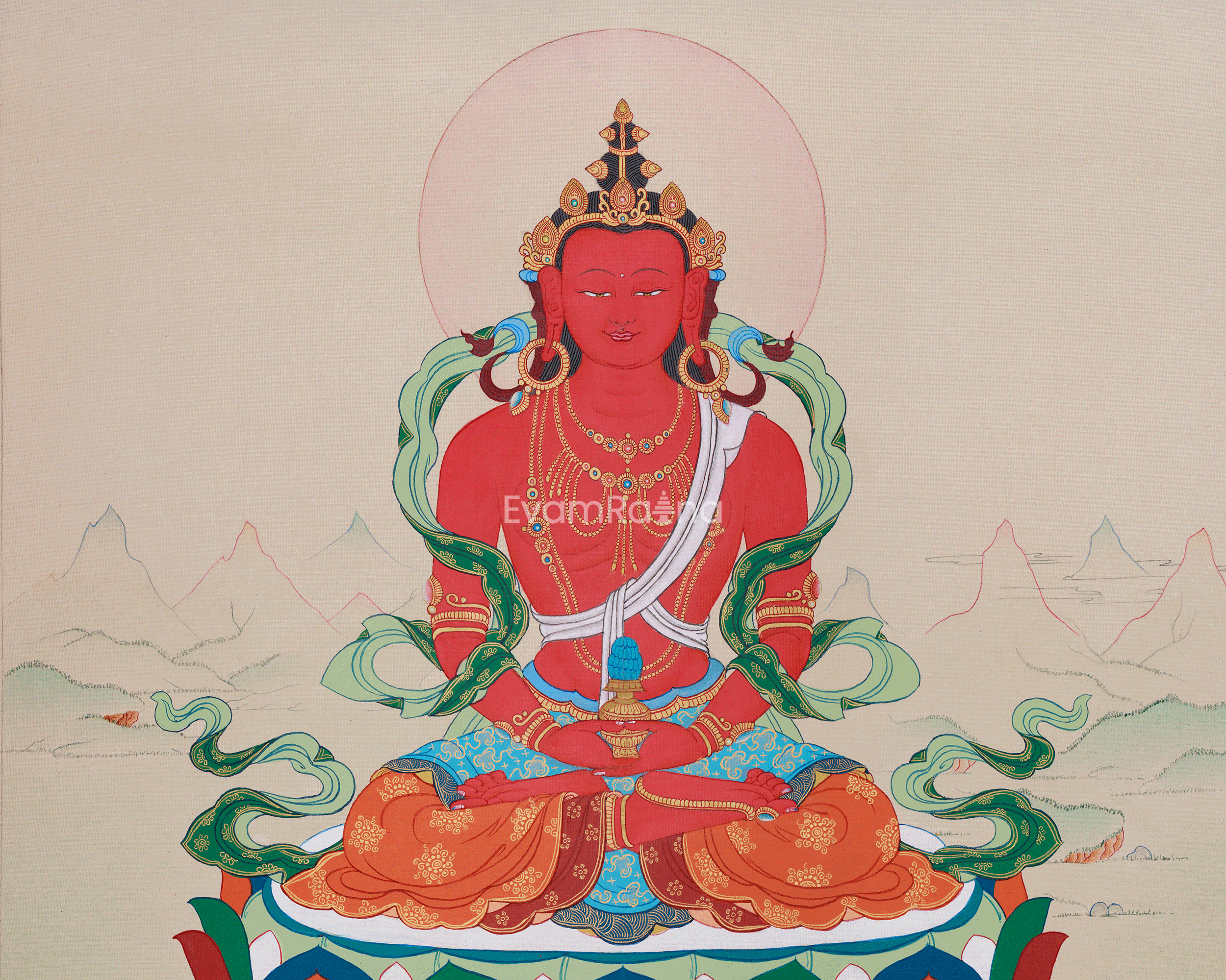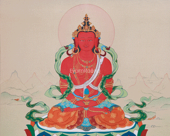 Original Thangka of Amitayus, Buddha of Infinite Light | Holding the Vase of Nectar