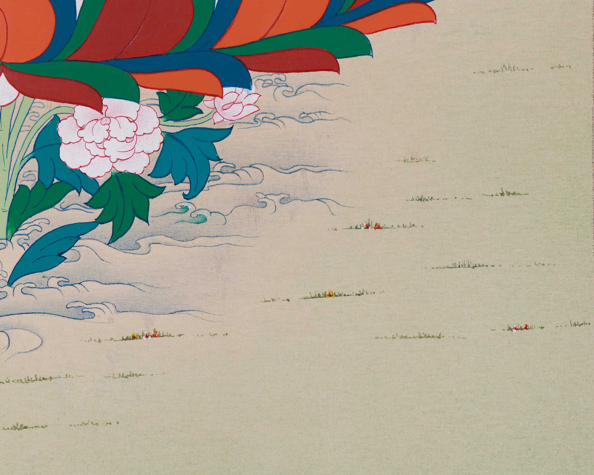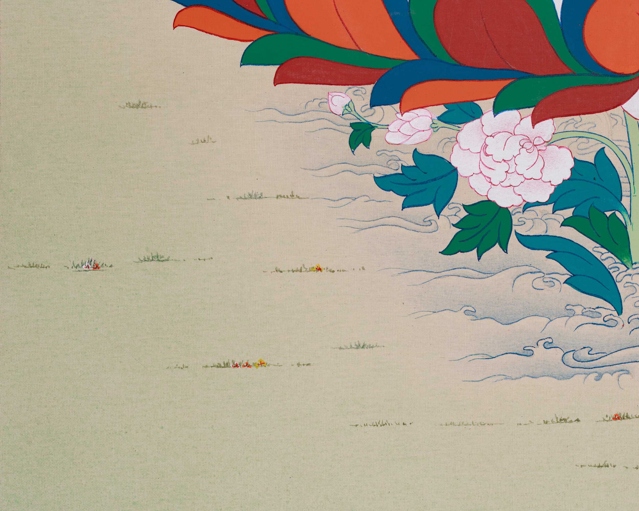 - Do not apply liquids or other materials to the surface of the thangka.