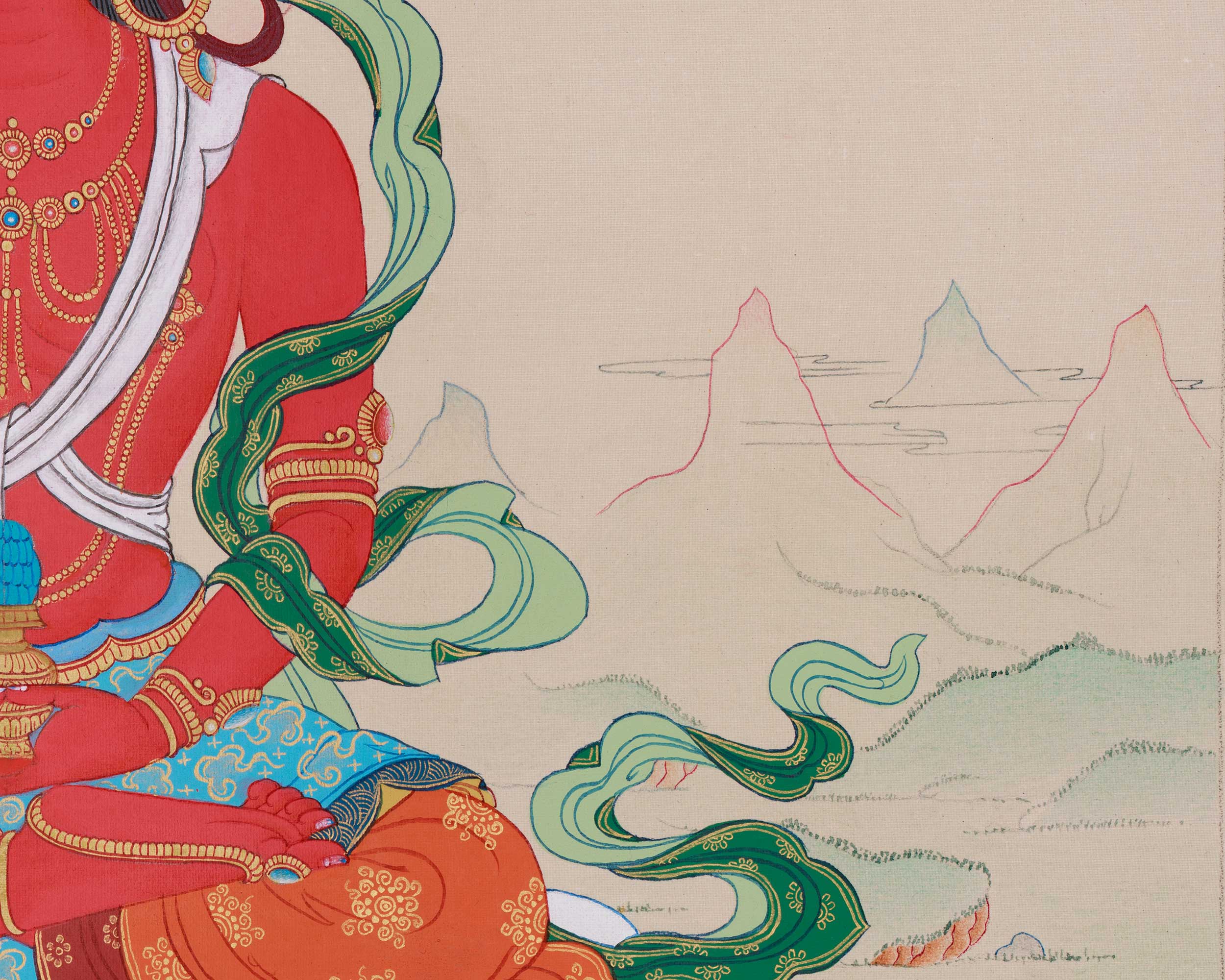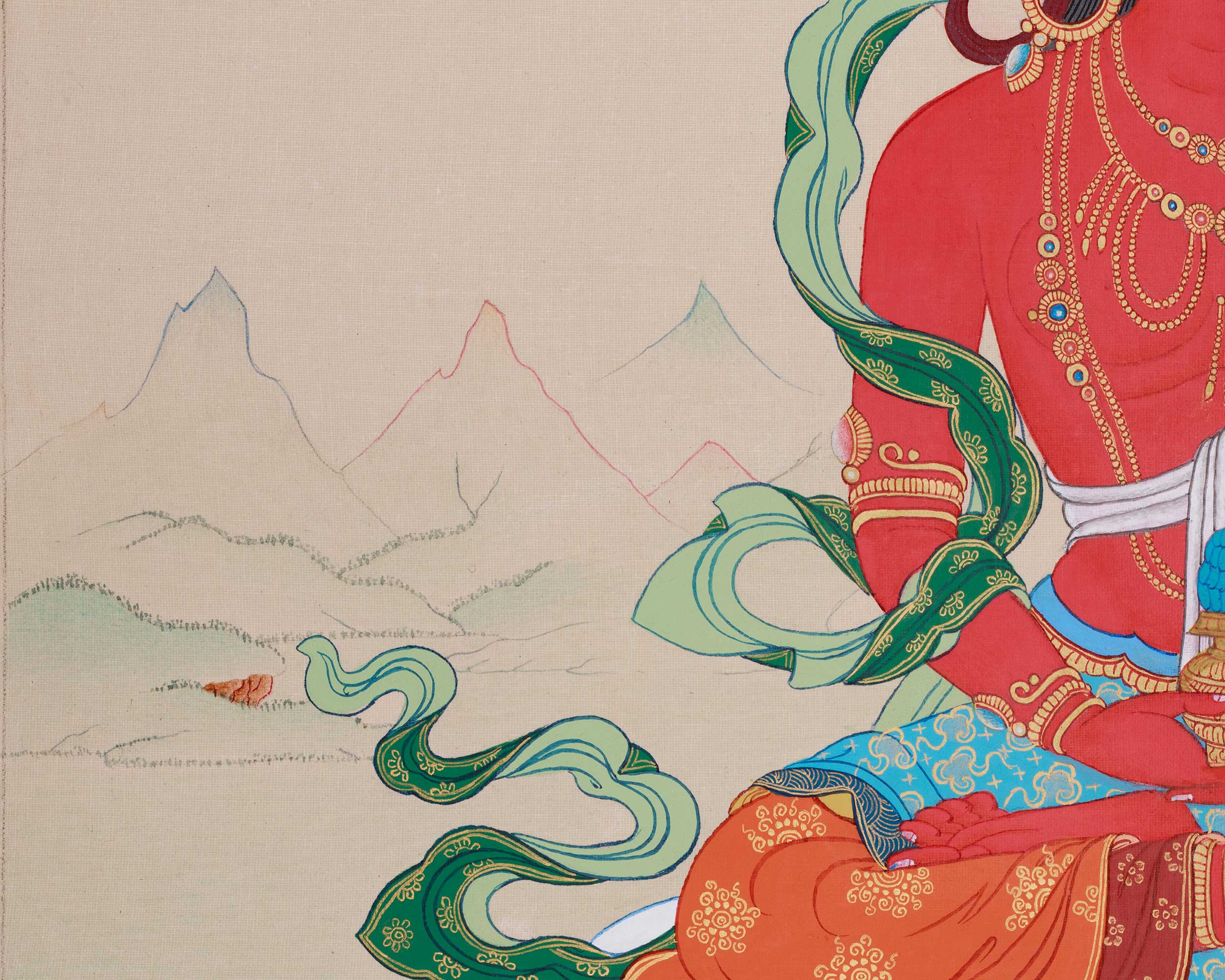 - Regularly inspect your thangka; examine the borders and all attachments.