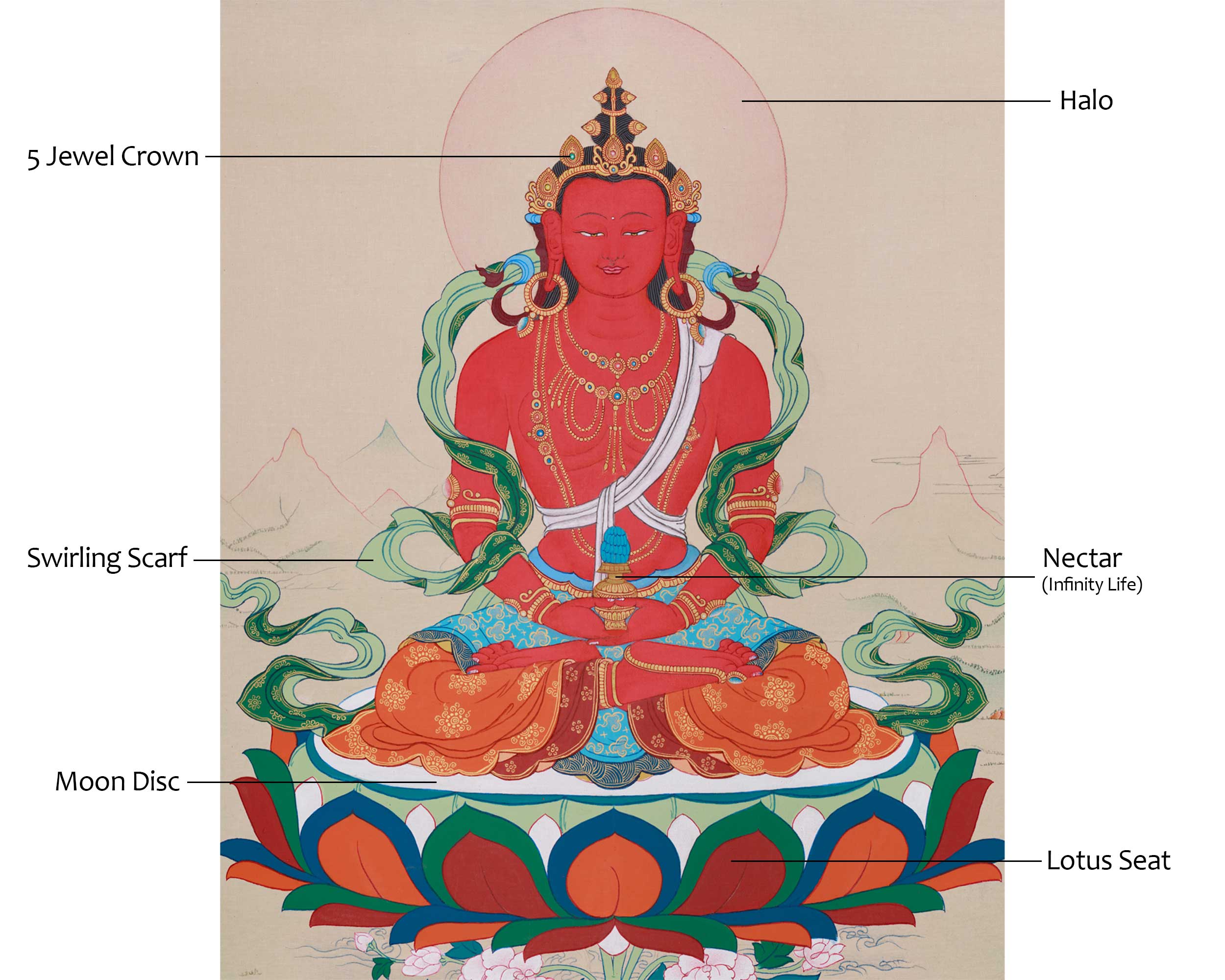 Thangka of Amitayus, Buddha of Infinite Light | Symbol of Long Life and Enlightened Grace