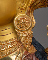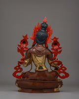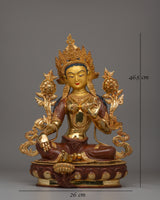 The Green Tara Statue of Love and Compassion beautifully embodies Green Tara, the revered goddess of compassion, healing, and protection. Standing at 46.5 cm tall and 26 cm wide, this exquisite statue is handcrafted from copper with acrylic color detailing. Weighing 8.45 kg, it offers a substantial presence, making it a striking centerpiece for any sacred space or altar.