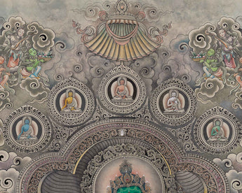 We are delighted to showcase the extraordinary Thangka prints by artist Rajesh Maharjan. With a profound understanding of iconography and remarkable attention to detail, Rajesh Maharjan captures the essence of spirituality in each of their masterful creations. Their skillful brushwork and meticulous use of colors bring these sacred images to life, allowing viewers to immerse themselves in the rich symbolism and profound beauty of Thangka art. By offering their prints, we aim to honor their artistic legacy and provide art enthusiasts with an opportunity to experience the transcendent world of Thangka through their incredible talent.