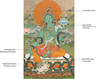 Immerse yourself in the divine energy of inner balance with our Green Tara Thangka Art Print. This exquisite artwork beautifully captures the essence of Green Tara, the goddess of compassion and renewal. The lush green hues and intricate details of this Thangka evoke a sense of serenity, inviting you to find harmony within. Green Tara is traditionally associated with qualities of protection, healing, and compassion, making this art print a powerful addition to any sacred space. Whether placed in your meditation corner or adorning your home, the tranquil presence of Green Tara serves as a visual reminder to cultivate balance and renewal in your life. Let the soothing energy of nature's embrace guide you towards a centered and harmonious existence with our Green Tara Thangka Art Print for inner balance.