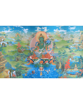 Green Tara Thangka Painting, Tibetan Tara Buddhist Art, High Quality Giclee Canvas Print, Digital Print, Tara