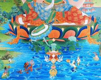 As requested for consecrations/blessings, we can take thangka to Monasteries/Rinpoches from nearby Boudha Stupa. We kindly ask you to offer $50 for the monasteries for blessings/consecration service.