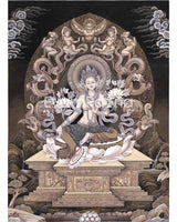 Presenting our magnificent High-Quality Green Tara Thangka Print, an exquisite combination of spiritual significance and artistic skill. This exquisitely crafted Thangka Print, created with cutting-edge Giclée printing technology, enthralls with its vivid hues, minute details, and museum-caliber polish. Beautifully rendered, the divine presence of Green Tara—the personification of kindness and quick release—creates a hallowed atmosphere in your home. It is a potent tool for enlightenment, drawing you into a visual meditation with meticulous replication of every brushstroke and nuance. This exquisitely crafted Thangka Print is more than just a work of art; it is a spiritual conduit that reverberates with the blessings of Green Tara, encouraging bravery, compassion, and the journey toward enlightenment.