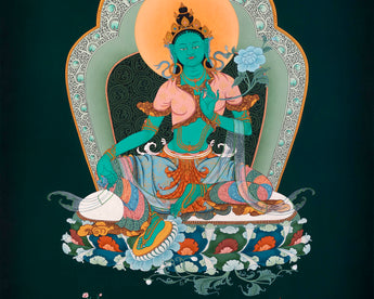 Green Tara Thangka Print | Digital Canvas Print | Buddhist Painting Print