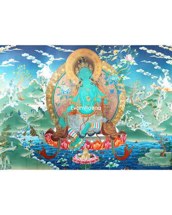 Green Tara Thangka, Tibetan Tara, Quality Canvas Print