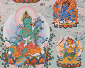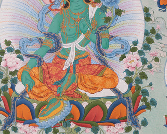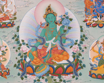 Green Tara with Buddhas and Bodhisattvas | Traditional Tibetan Thangka Print