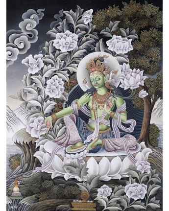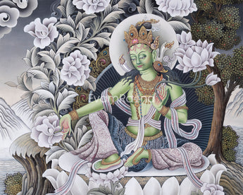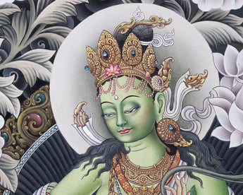 Traditional Thangka For Green Tara Buddha Mantra Practice