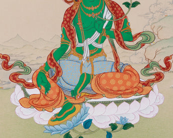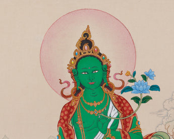 33 cm Green Tara Painting | Tibetan Goddess of Swift Protection