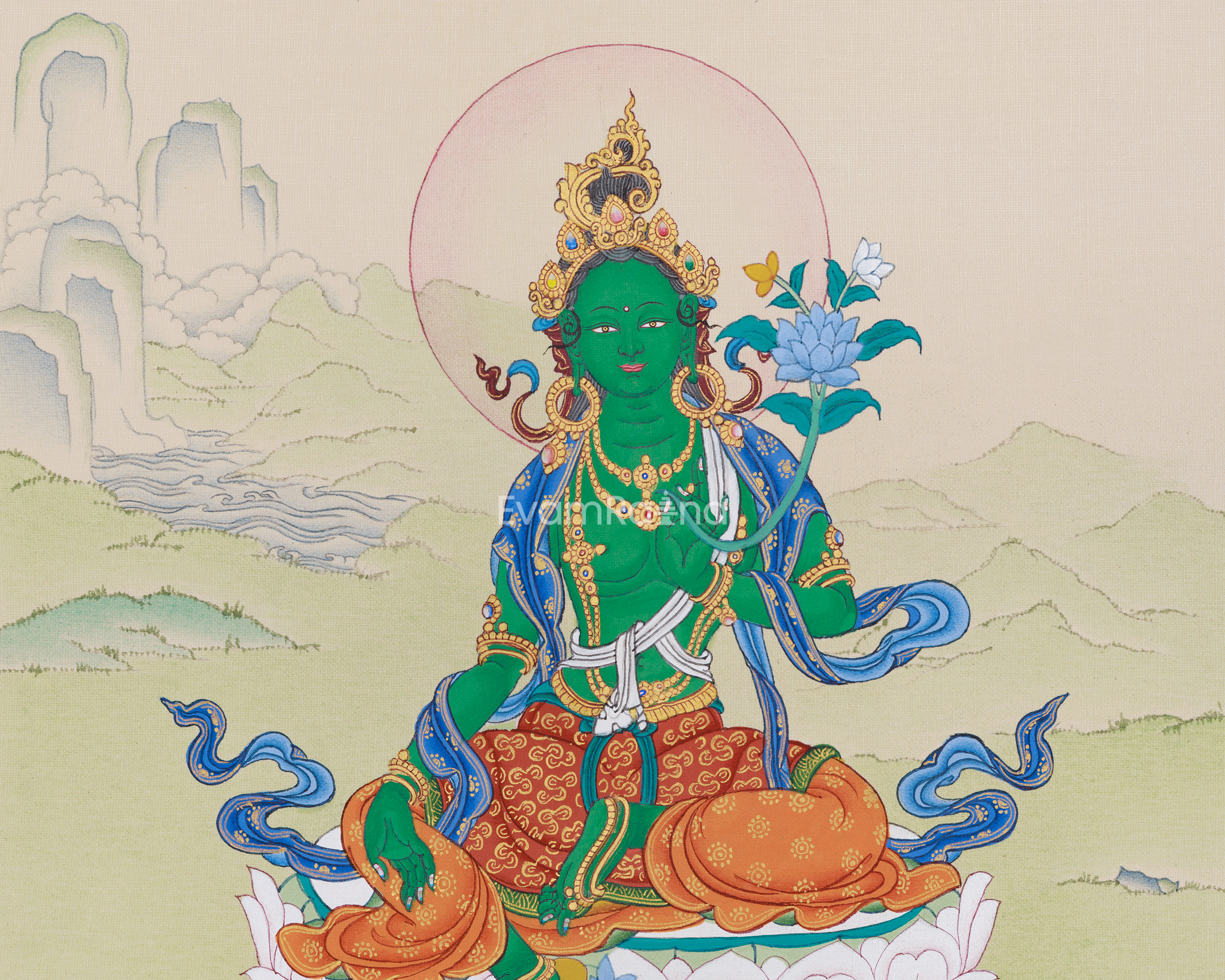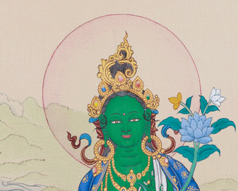 Handmade Green Tara Painting | Divine Mother Who Removes Fear and Brings Enlightened Peace