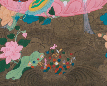 As per your request for consecrations/blessings, we can take the thangka to nearby monasteries or Rinpoches from the Boudha Stupa. We kindly ask that you contribute $50 to the monasteries for these blessing and consecration services.