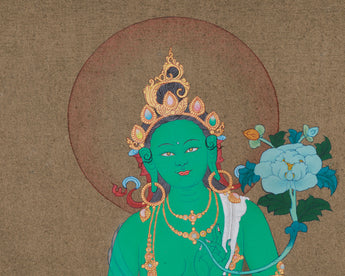 Hand-Painted Traditional Green Tara Thangka for Spiritual Blessings