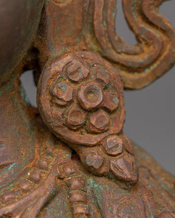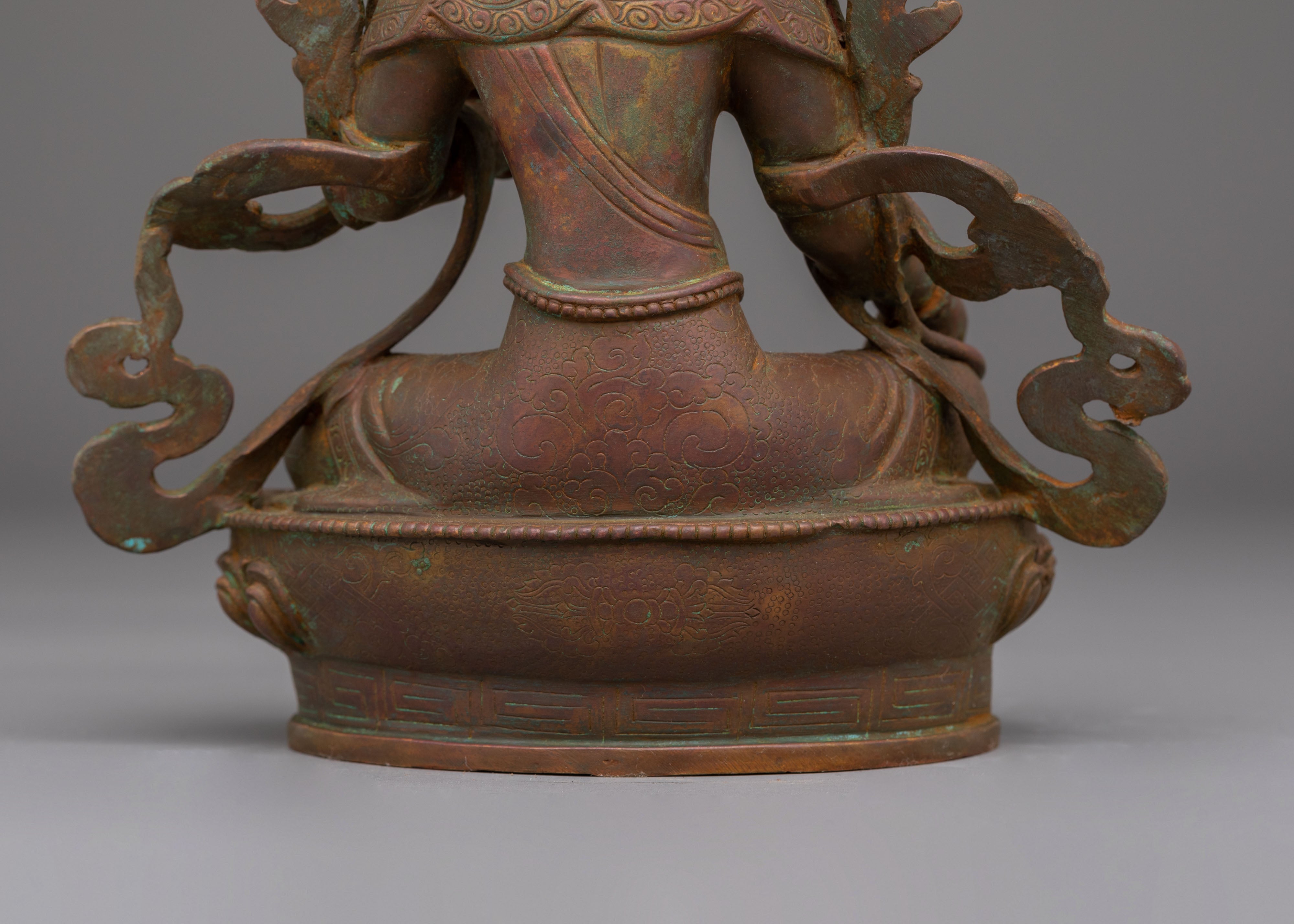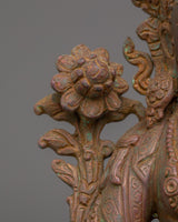 This Divine Bodhisattva Green Tara Art represents protection, healing, and spiritual enlightenment. This handcrafted statue, which measures 23cm (Height) x 18cm (Base) and weighs 1.56 kg, is made of oxidized copper and has a durable and spiritual appeal. Crafted by expert artisans, this item symbolizes the rich traditions of Himalayan Buddhism, making it an important addition to altars, meditation places, or holy collections.