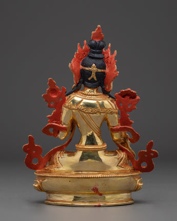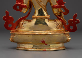 This stunning Enlightened Green Tara Statue serves as both a spiritual centerpiece and a collectible work of art. Crafted with a radiant gold-plated finish, it enhances Tara’s divine presence, making it perfect for your meditation room, shrine, or as a thoughtful gift. Her poised posture, ready to step down and offer aid, symbolizes immediate compassionate action in the face of suffering. Revered in Vajrayana and Mahayana traditions, Green Tara embodies feminine wisdom energy that heals, nurtures, and protects, inviting peace and courage into your spiritual practice and daily life.