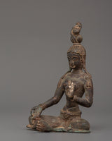 Green Tara Statue in Antique Copper Finish | Tibetan Goddess of Compassion & Protection