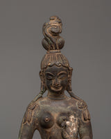 This monument, with its Antique Copper Finish and elaborate details, embodies Tara's spiritual presence and provides any environment with a sense of power and tranquility. This item can be used as a devotional and a daily source of inspiration, making it ideal for Buddhist altars, meditation areas, puja ceremonies, or sacred presents. This 0.48 kg sculpture is perfect for travel altars or personal usage since it is compact but spiritually powerful.